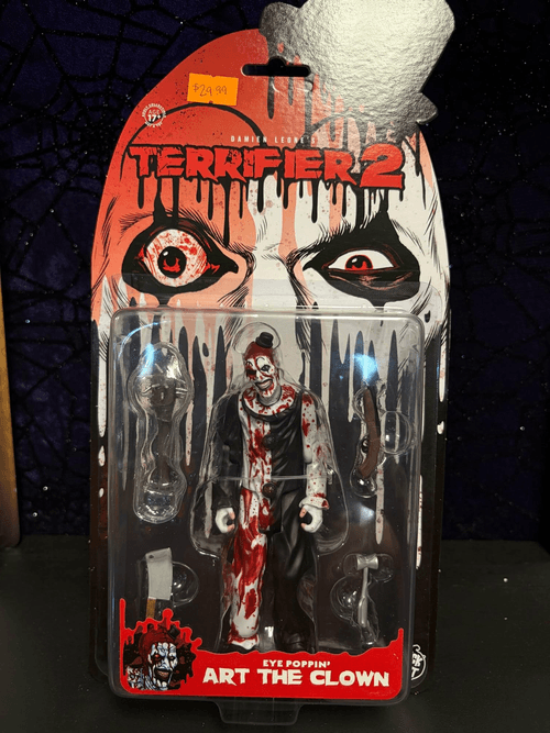5 1/2" Terrifier 2 - Art the Clown Collectible Action Figure. Trick or Treat Studios is proud to present the officially licensed, Terrifier 2 - Eye Poppin' Art the Clown - 5" action figure , made of plastic very detailed . Includes action figure along with mace, cleaver, medical hammer and shotgun accessories. Great to add to your collection.