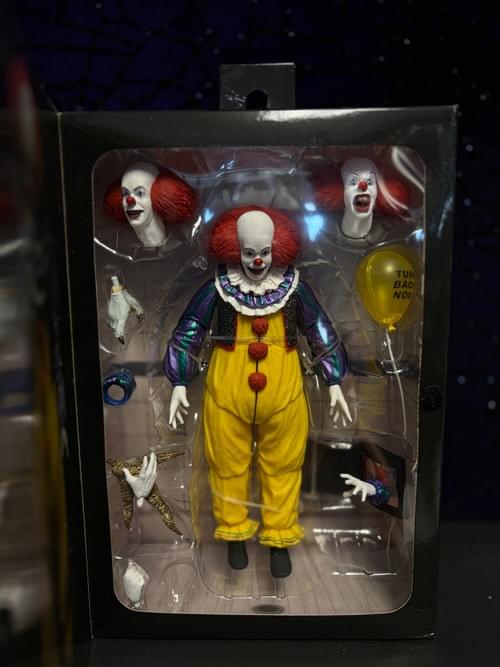 Neca- IT The Movie Pennywise 1990 -7in action figure has two changeable heads , a balloon and multiple hands. Very well detailed. Great for collectors items. They are going fast order yours before they all float away .